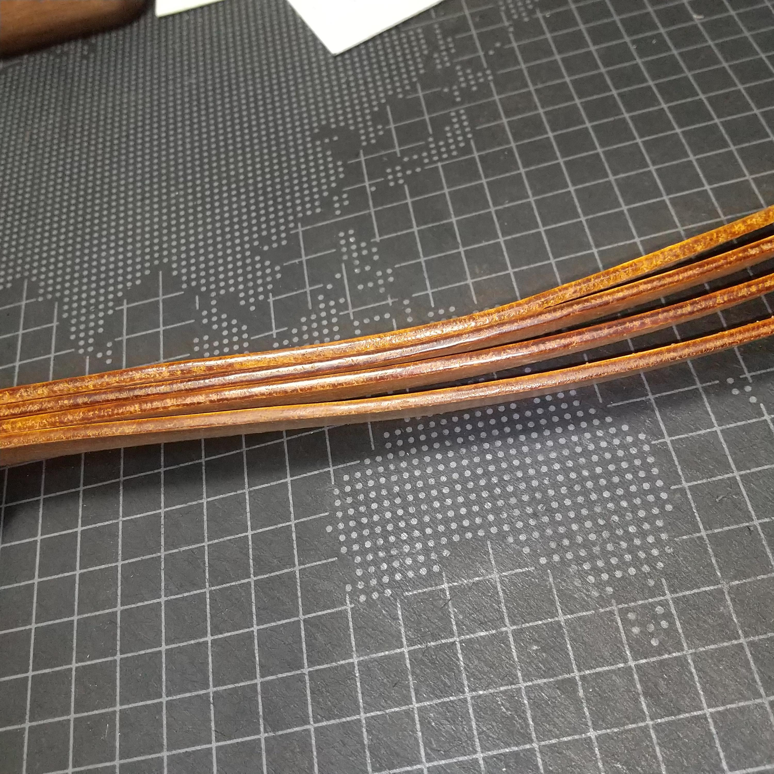 整ったら、山形県産の蜜蝋で毛羽立たないように固めていきます。