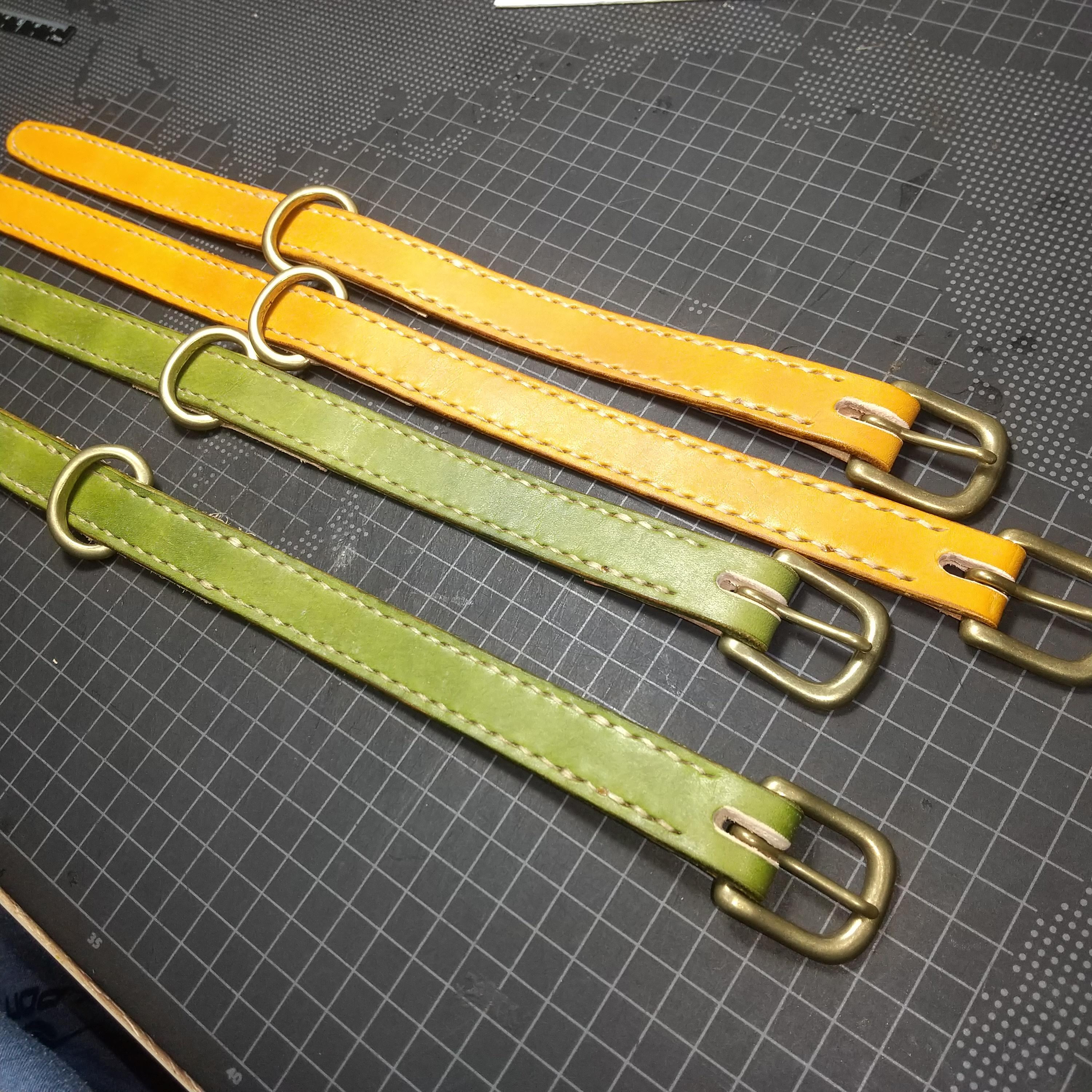 輪留めはワンポイントでヌメ革キナリ(染色無し)の革本来のお色で付けました。